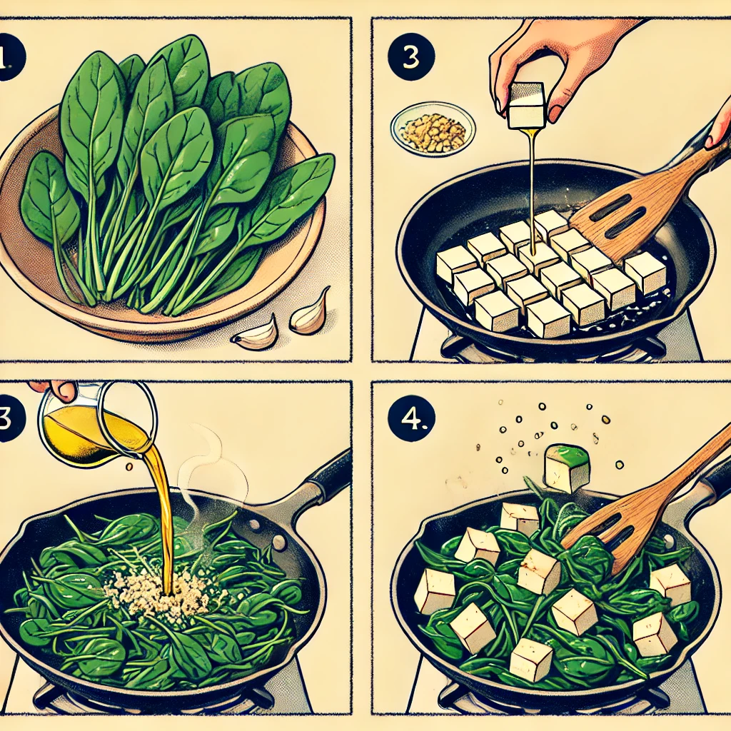 시금치와 두부를 함께 볶아 단백질과 미네랄을 동시에 섭취할 수 있다.