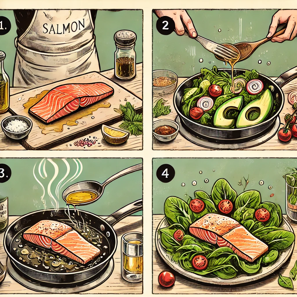 - 연어 – 연어구이와 아보카도 샐러드 (오메가-3가 혈관 건강 개선)